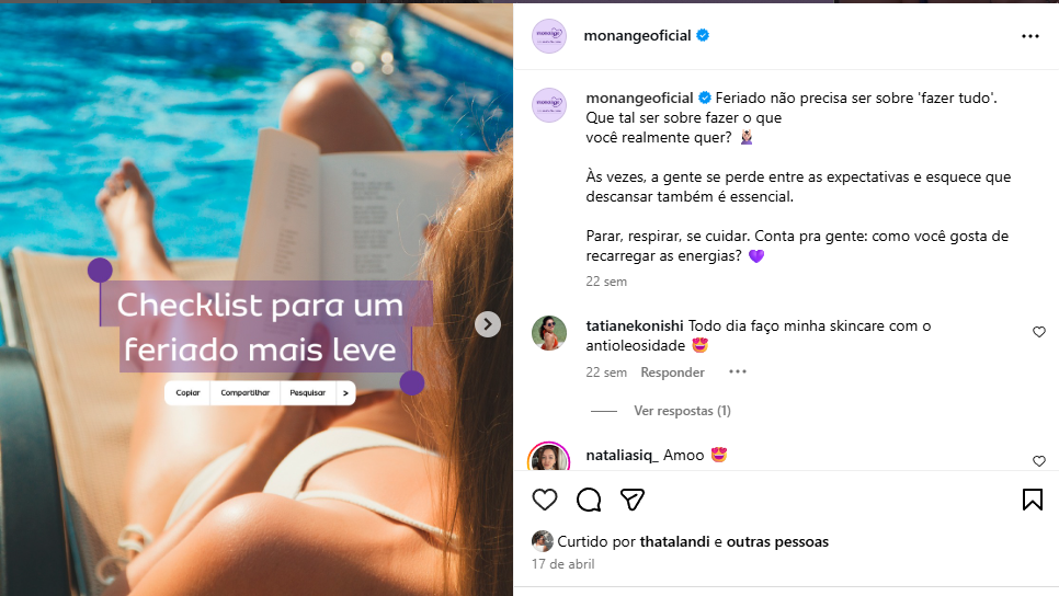 Meu trabalho de criação de conteúdo contribuiu diretamente para consolidar a presença online de marcas como Grupo CCR (atualmente Grupo Motiva), Claro, Monange e Paixão, com foco em criação de comunidade e engajamento orgânico.
